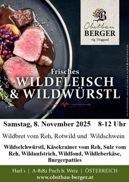Der nächste Wildverkauf ab Hof findet am 8. November 2025 von 8 bis 12 Uhr statt.